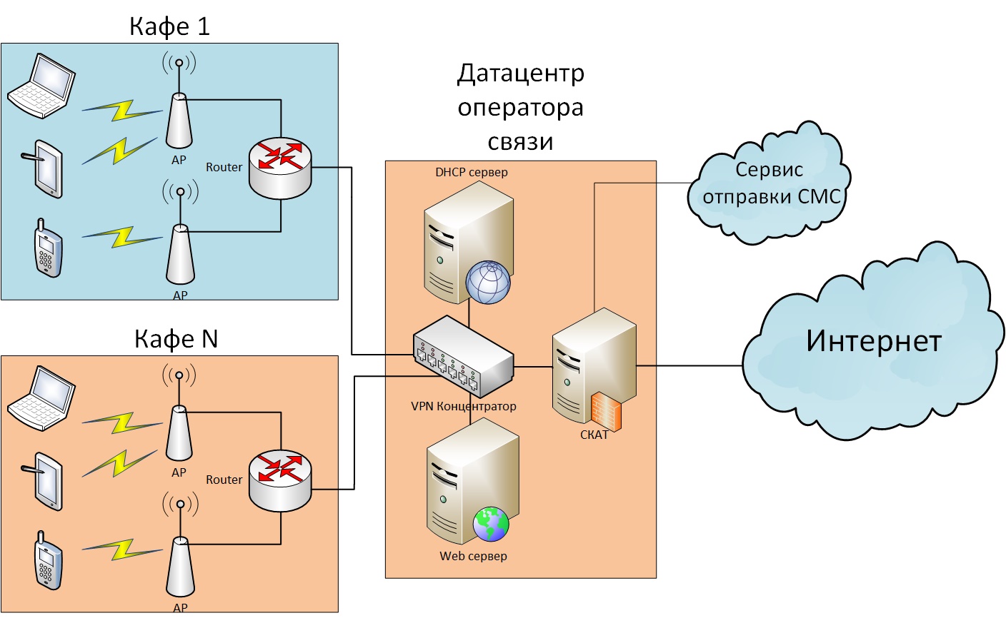 Помимо стандартного оборудования для предоставления доступа к сети интернет абонентам (коммутаторы, маршрутизаторы, граничный роутер, Wi-Fi точки доступа) оператор должен иметь: