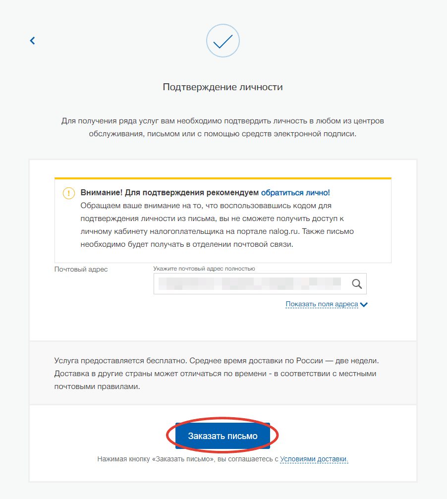Найдите ссылку «Подтвердить личность заказным письмом» и перейдите по ней.
