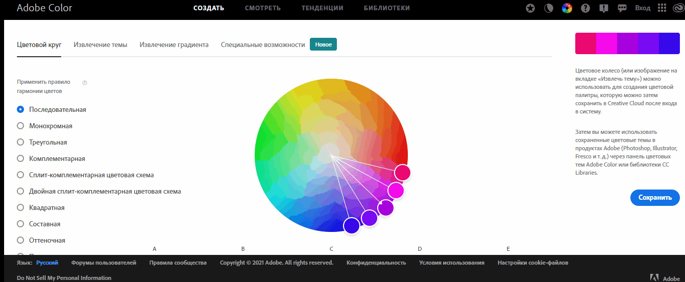 Поиск по цветам, настроениям и ключевым словам в Adobe Color
