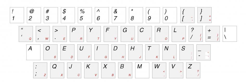 - существует частичное сходство с QWERTY, поэтому раскладки можно комбинировать, используя одну дома, а вторую на работе;