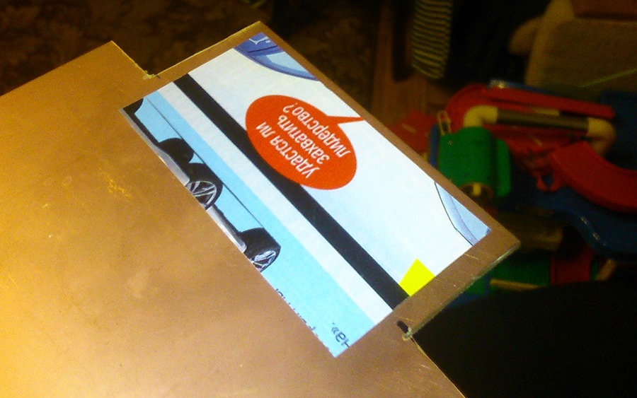 Потом беру страницу из глянцевого журнала и «вкладываю» ее в лист А4 (см. фото), что бы принтер не зажевал при печати: