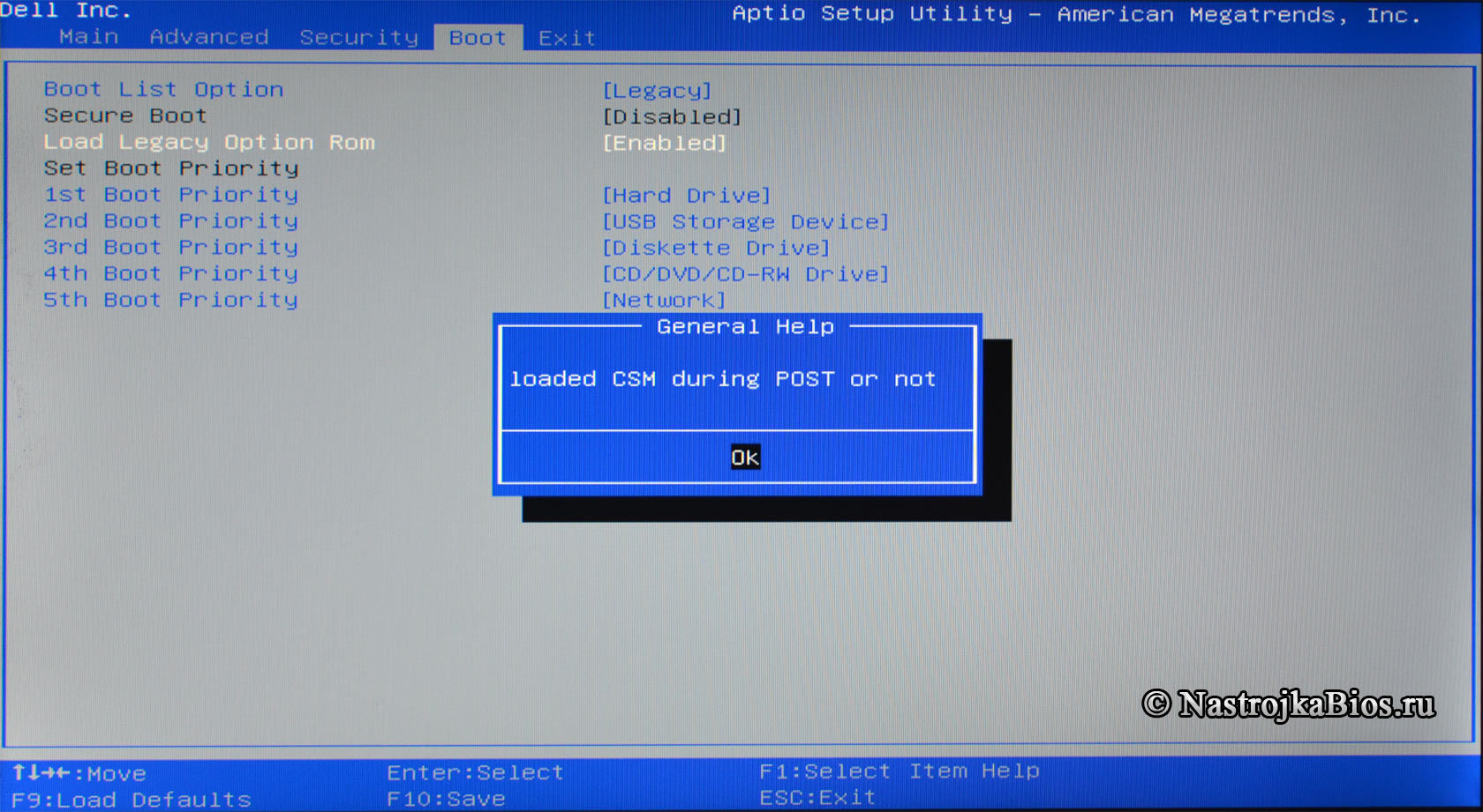 Программа Aptio Setup Utility — BIOS фирмы American Megatrends Inc на системных платах Dell Inc.