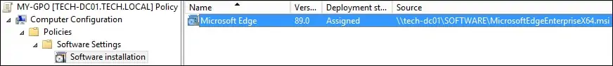 В нашем примере пакет MSI браузера Microsoft Edge был установлен с использованием GPO на всех доменных компьютерах.