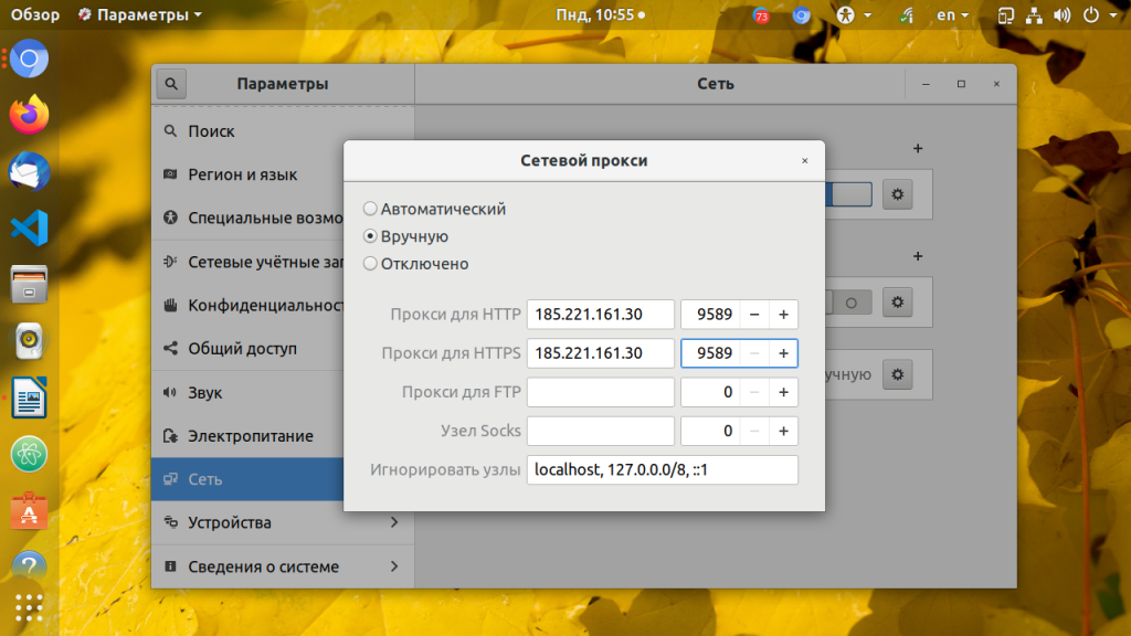 Для наладки прокси в Ubuntu Linux используется графический интерфейс. Нужно выполнить следующие действия: