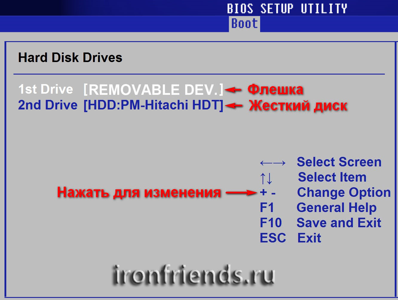 Обратите внимание на то, что в разделе «Boot» могут быть и другие пункты, отвечающие за приоритет загрузки, типа «Hard Disk Drives» или «Removable Device Priority»