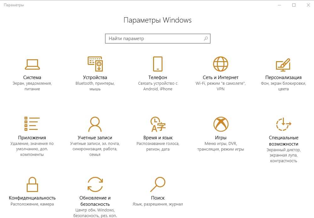 - В окне «Настройки» выберите «Обновление и безопасность».