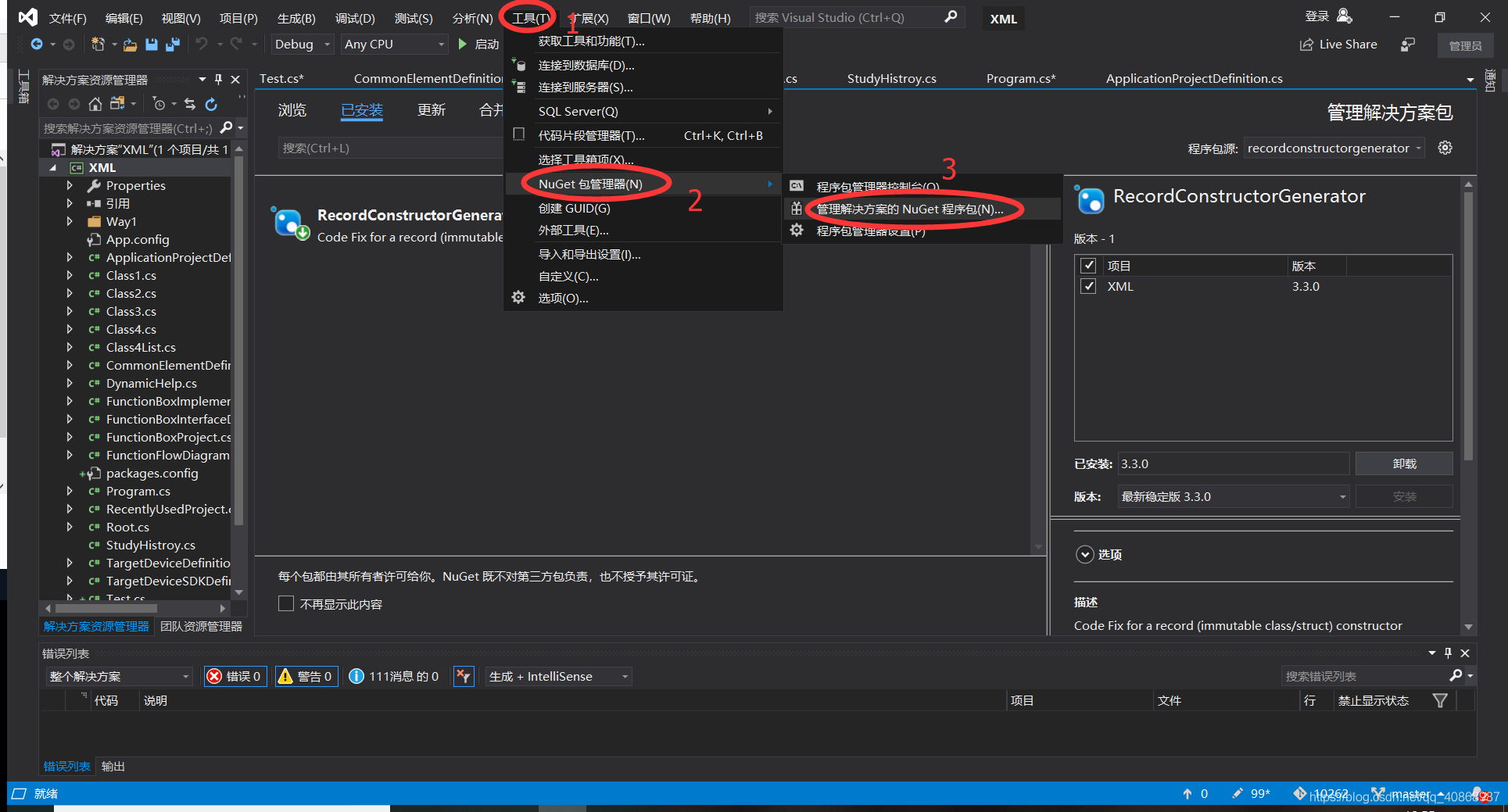 1. Откройте VS: Инструменты-> Диспетчер пакетов NuGet-> Диспетчер пакетов NuGet для решения … Китайская версия: Инструменты-> Управление пакетами NuGet-> Решение для управления пакетами NuGet …