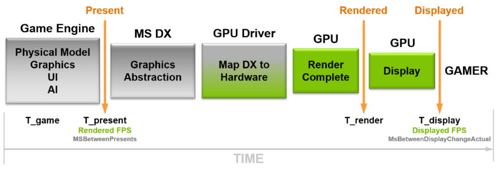 Кадров в секунду: это кадры, которые мы видим на экране. Они рассчитаны в конце рабочего трубопровода. Рендеринг кадров : это кадры, которые входят в начало рабочего конвейера. Это поможет нам определить производительность и эффективность видеокарты. 90-й, 95-й и 99-й процентили: используется для определения дисперсии кадров. Если процентили близки к среднему, fps стабильны. Если нет, то кадры в секунду неравномерны и могут создавать негативные визуальные эффекты.