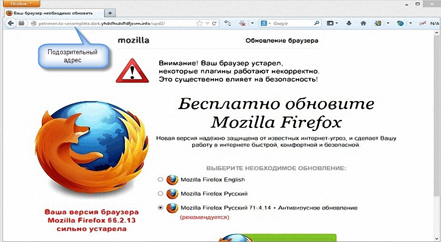 Зайдя на некоторые сайты вам предлагается обновить программное обеспечение вашего компьютера: браузеры Mozilla Firefox, Google Chrome или Adobe Flash Player.