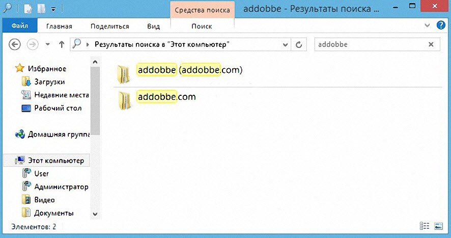 Нашлись две папки содержащие этот вредоносный элемент. Удалил их. Открыл редактор реестра и опять в поиске вписал «аddobbe».