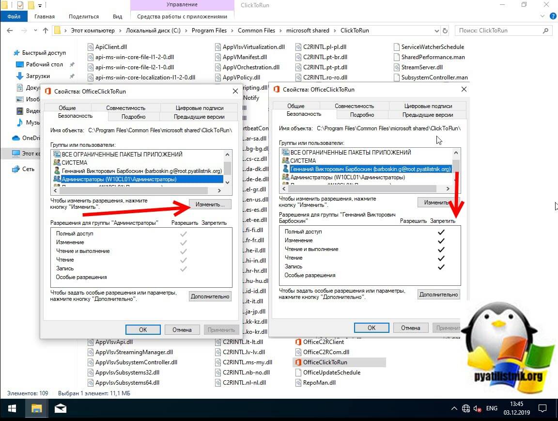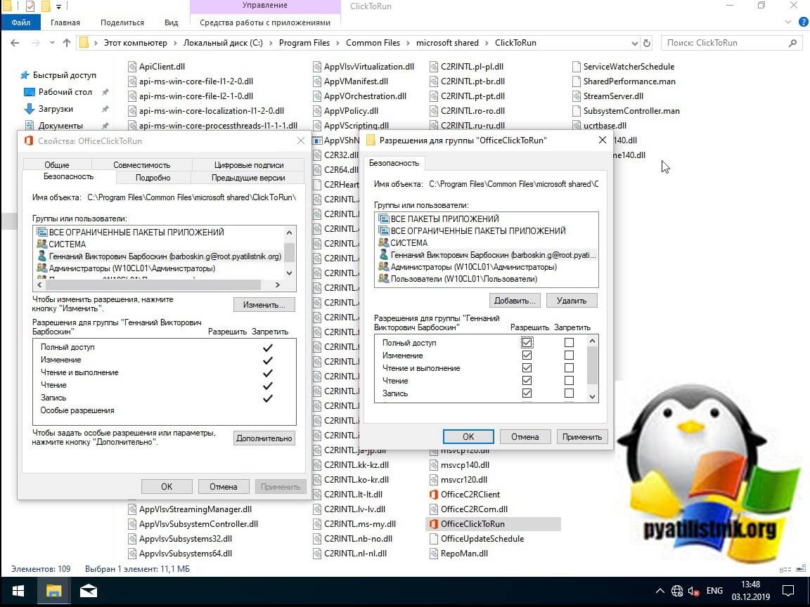 Если по каким-то причинам вам не помогли первые два метода и вы до сих под при запуске исполняемого файла exe или ярлыка, получаете окно с ошибкой «Windows не удается получить доступ к указанному устройству, пути или файлу», то следует посмотреть какие разрешения выставлены в его свойствах, это очень важно. В моем примере, это файл OfficeClickToRun.exe