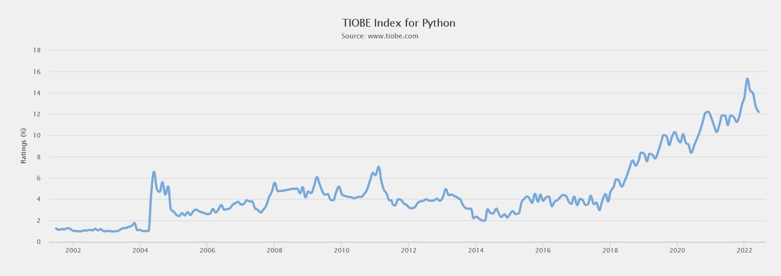 Согласно индексу TIOBE, популярность Python растёт из года в годИзображение: TIOBE