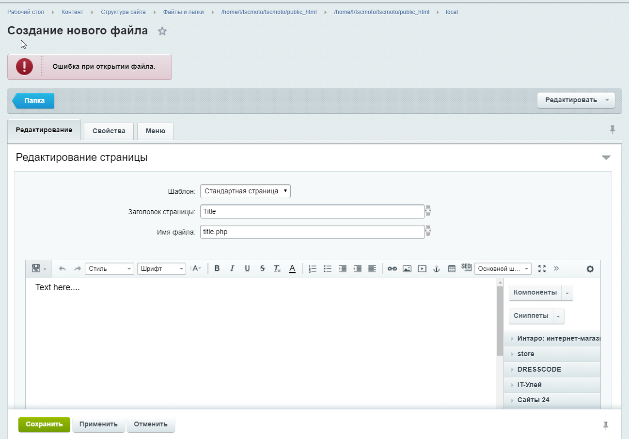 Данная проблема в Битриксе может появляться при отсутствии нужных прав на каталоги и файлы. В моём случае проблема возникла при многосайтовости, до этого всё было в порядке, но спустя какое-то время после длительной работы, появилось ограничение. За время поиска решения этой задачи, я нашел несколько решений и думаю, что один из вариантов Вам поможет справиться с данной проблемой.