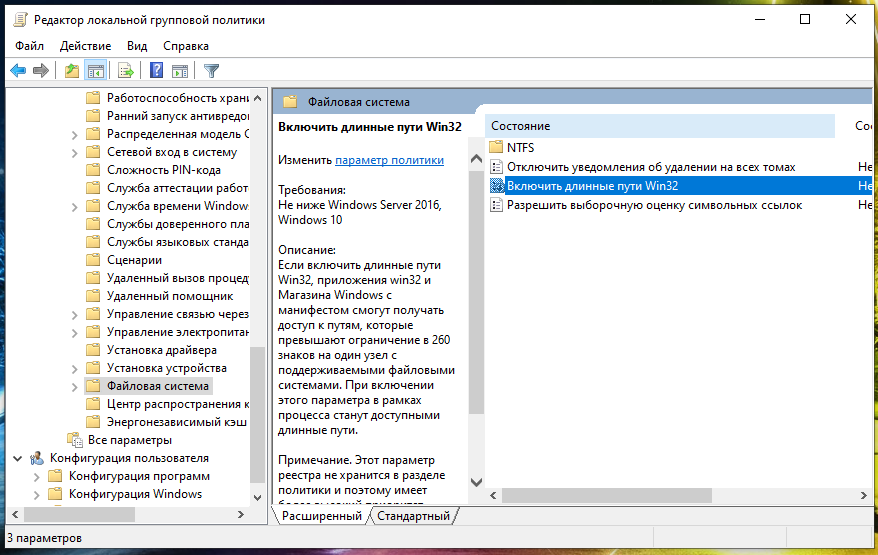Windows Pro или Enterprise: как снять ограничение в 260 символов на путь имени файла с помощью редактора локальной групповой политики