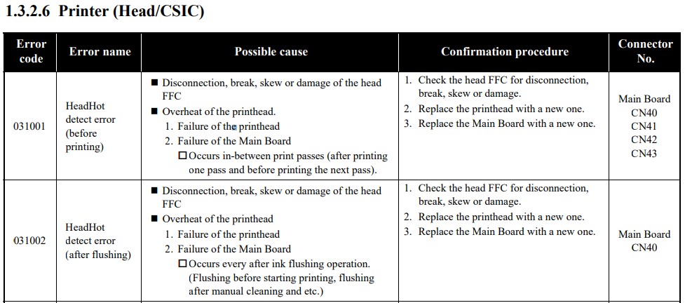 2. Failure of the Main Board - Occurs every after ink flushing operation.