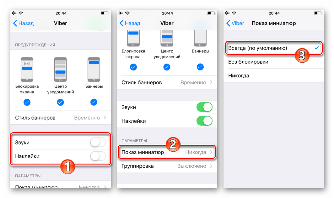 Пользователям Viber на платформе iOS для отключения сигналов необходимо выполнить следующие действия: