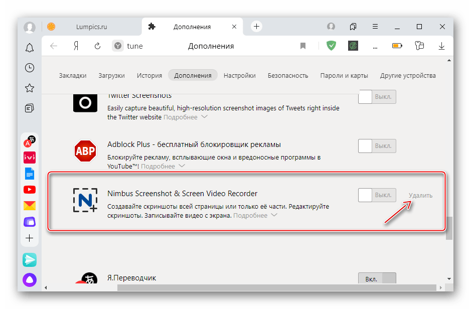 Подробнее: Как удалять расширения в Яндекс.Браузере