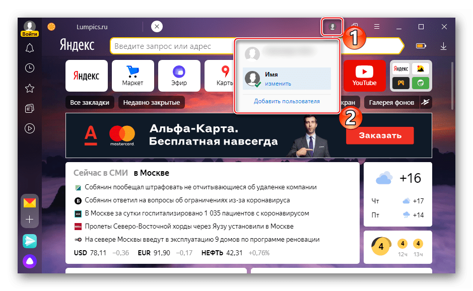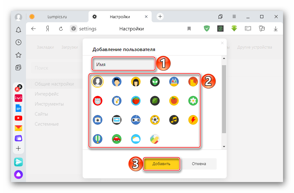 В настройках Яндекс.Браузера для ПК переходим к блоку «Пользователи» и нажимаем «Добавить пользователя».