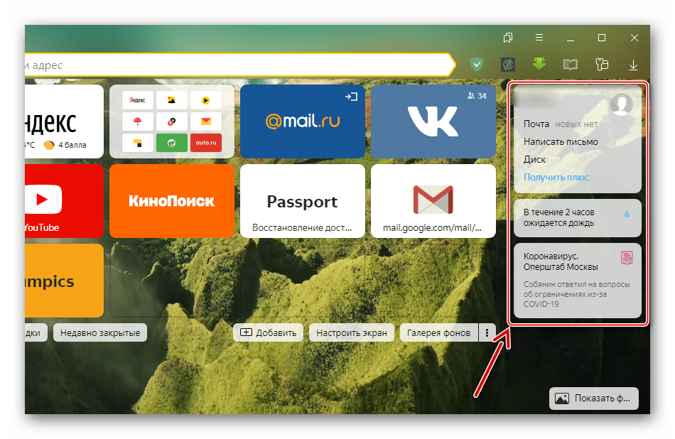 Информационные блоки не будут отображаться, если они отключены. Рассмотрим, как активировать их в Яндекс.Браузере для компьютера и мобильных устройств, а также в приложении Yandex.