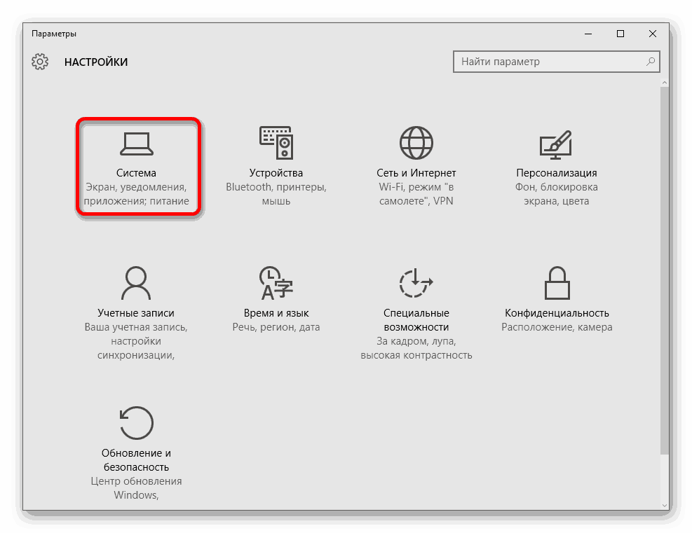 Жмём «Пуск», «Параметры» и выбираем раздел «Система».
