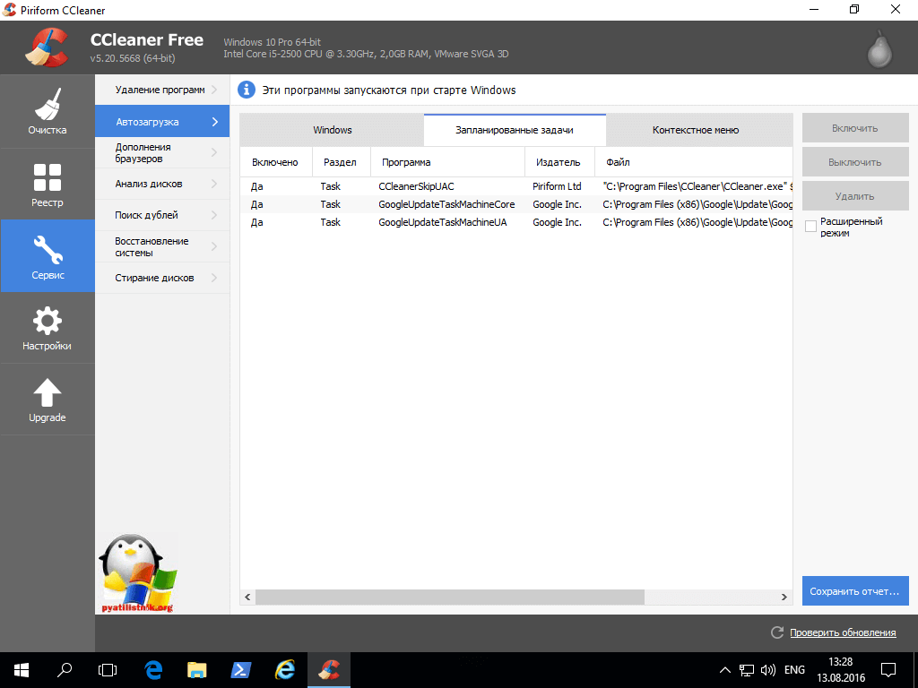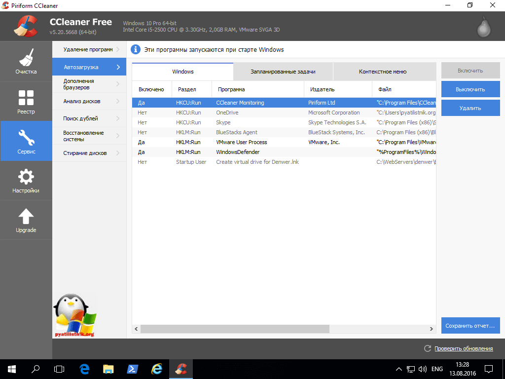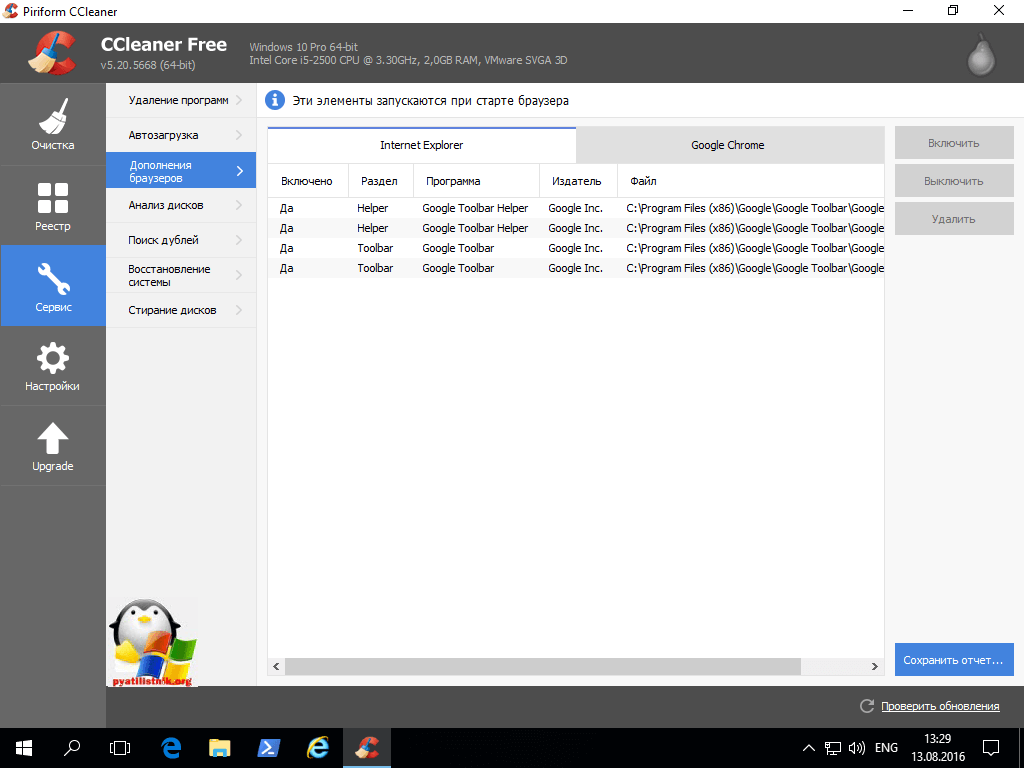 Вы можете использовать CCleaner для конфигурирования автозапуска приложений при загрузке операционной системы, а также управлять плагинами и расширениями для инсталлированных интернет обозревателей. Настройки этих параметров существенно влияют на работоспособность как самой ОС, так и браузеров. Для редактирования автозапуска выполните данные действия: