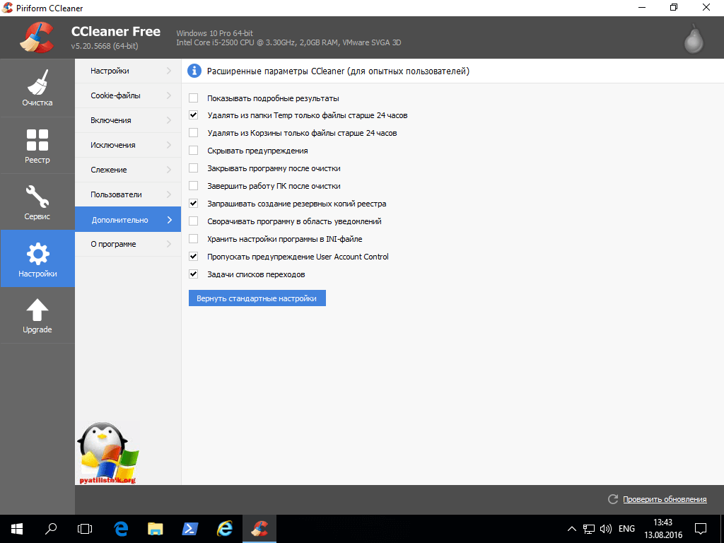 Очень полезная функция — позволяет держать систему в чистоте. Прежде всего настраиваем галочки в разделе «Очистка».