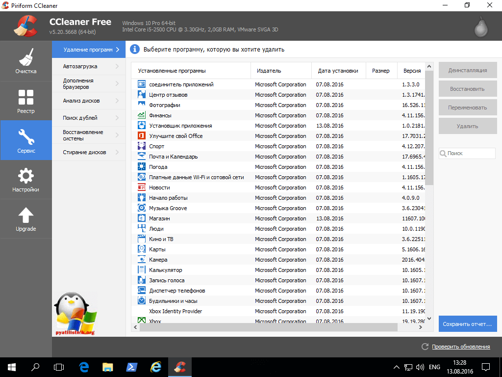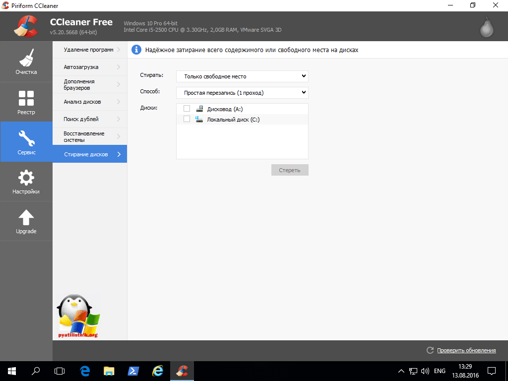 Продолжаем разбирать использование утилиты ccleaner. Переходим в пункт Сервис.
