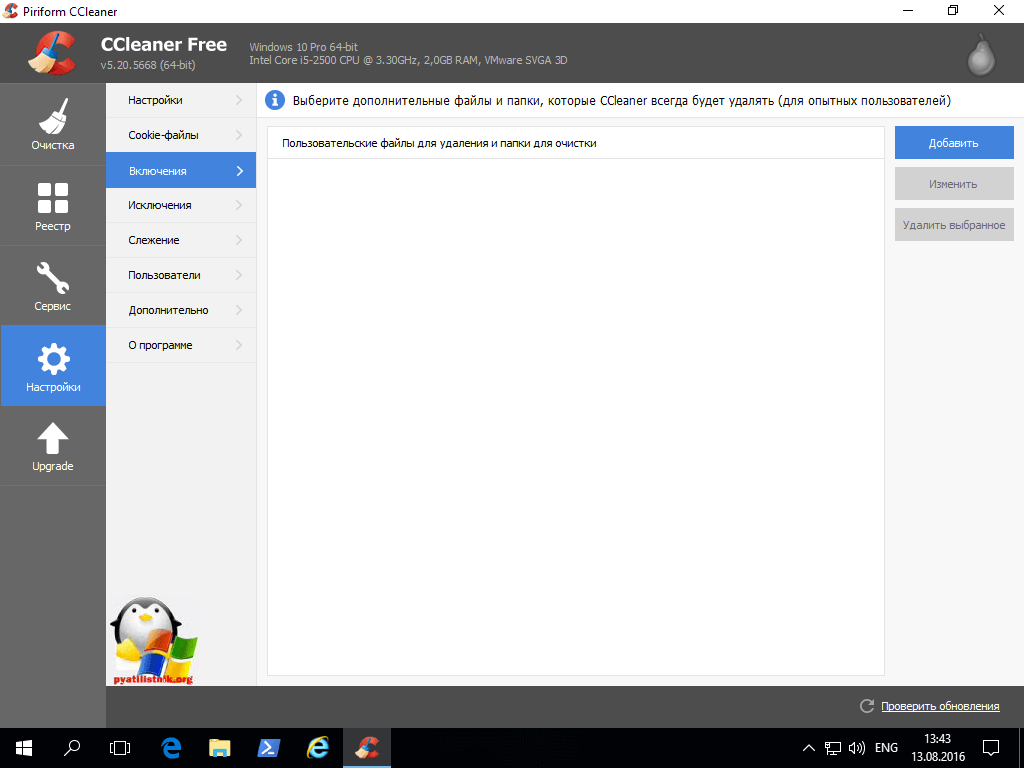 На этой вкладке можно составлять свой список папок и файлов для удаления. Вот какое окно появляется, если нажать кнопку Добавить: