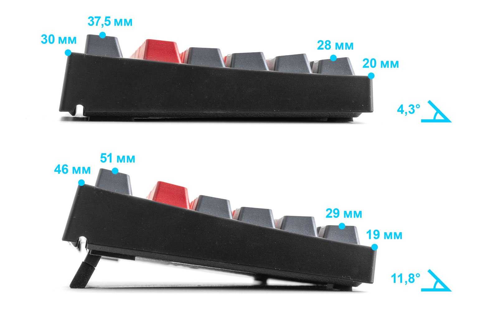 Клавиша F1 расположена над кнопкой «2» пятого ряда. Колпачки Ctrl, Win и Alt сделаны одинаковой ширины, левый Shift — длинный, Enter — одноуровневый.