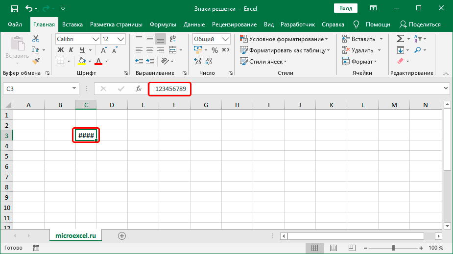 Довольно часто содержимое ячейки не умещается в ее текущих границах. И когда слишком длинным оказывается какое-то число, вместо него отображаются символы решетки (#) или, другими словами, октоторп. При этом программа хранит в памяти реальные значения, которые используются при расчетах, но из-за такого визуального представления даных, их невозможно идентифицировать, следовательно, работать с ними становится затруднительно или даже невозможно. В данном случае, просмотреть полное содержимое ячейки, конечно же, можно в строке формул, но это, вряд ли, можно назвать оптимальным решением.