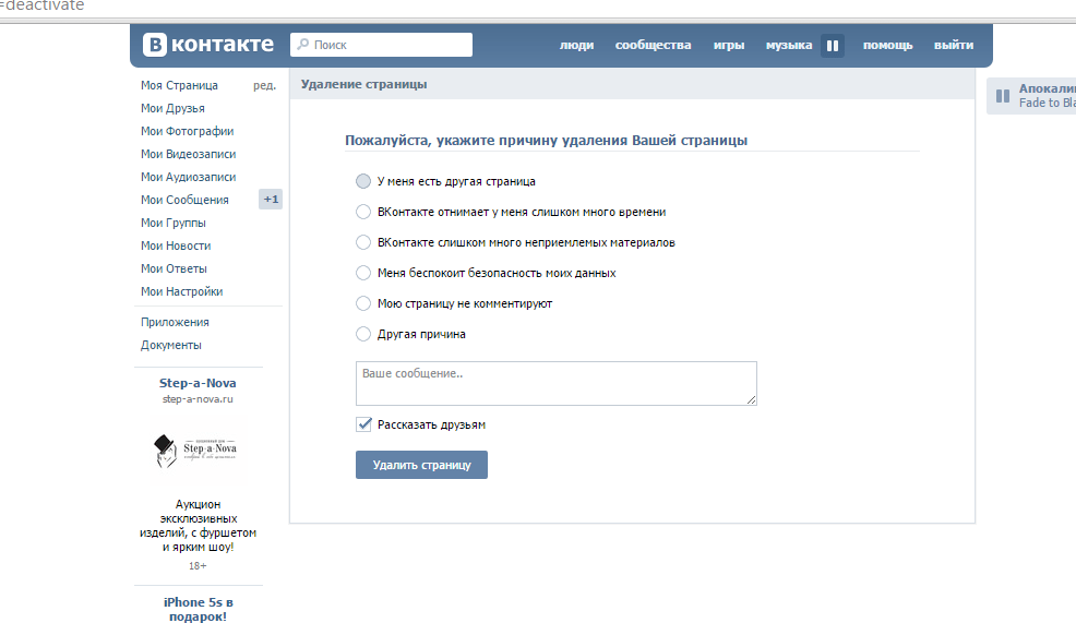 Как удалить страницу в Вконтакте?