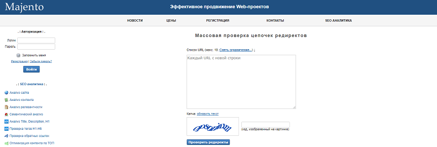 - Помимо отслеживания цепочки редиректов, делает полный SEO-аудит сайта, включая выявление ошибок оптимизации.