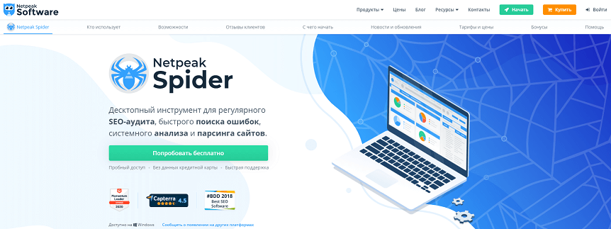 - Анализирует крупные контентные сайты (более 100 000 страниц).