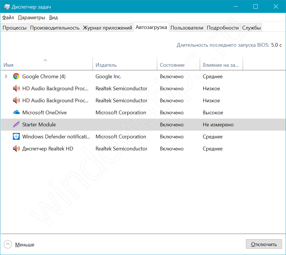 Управление автозагрузкой через диспетчер задач