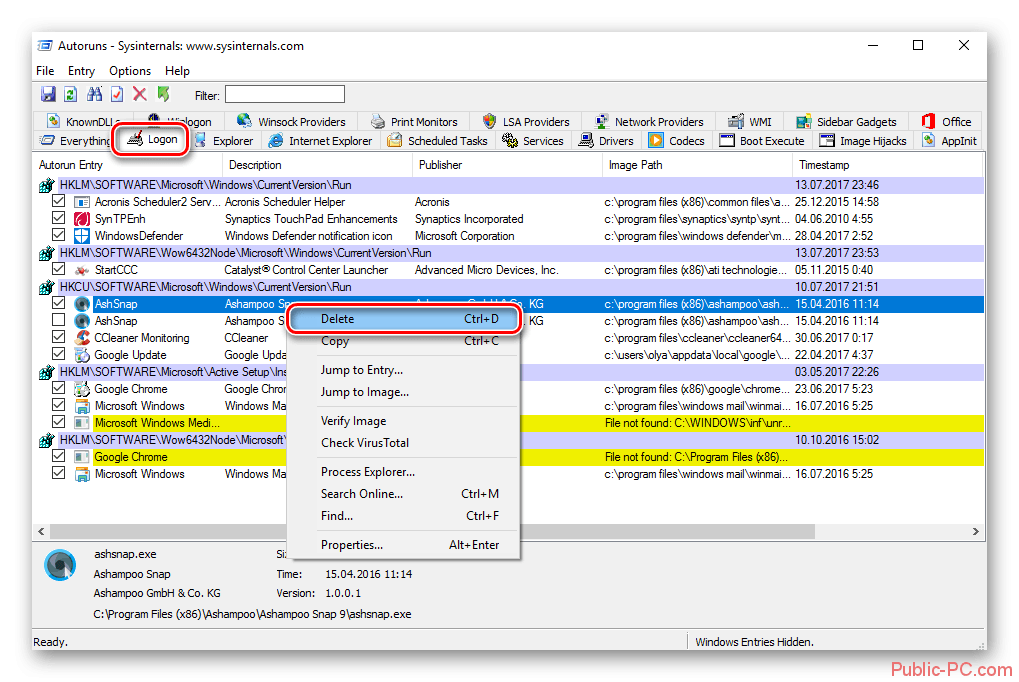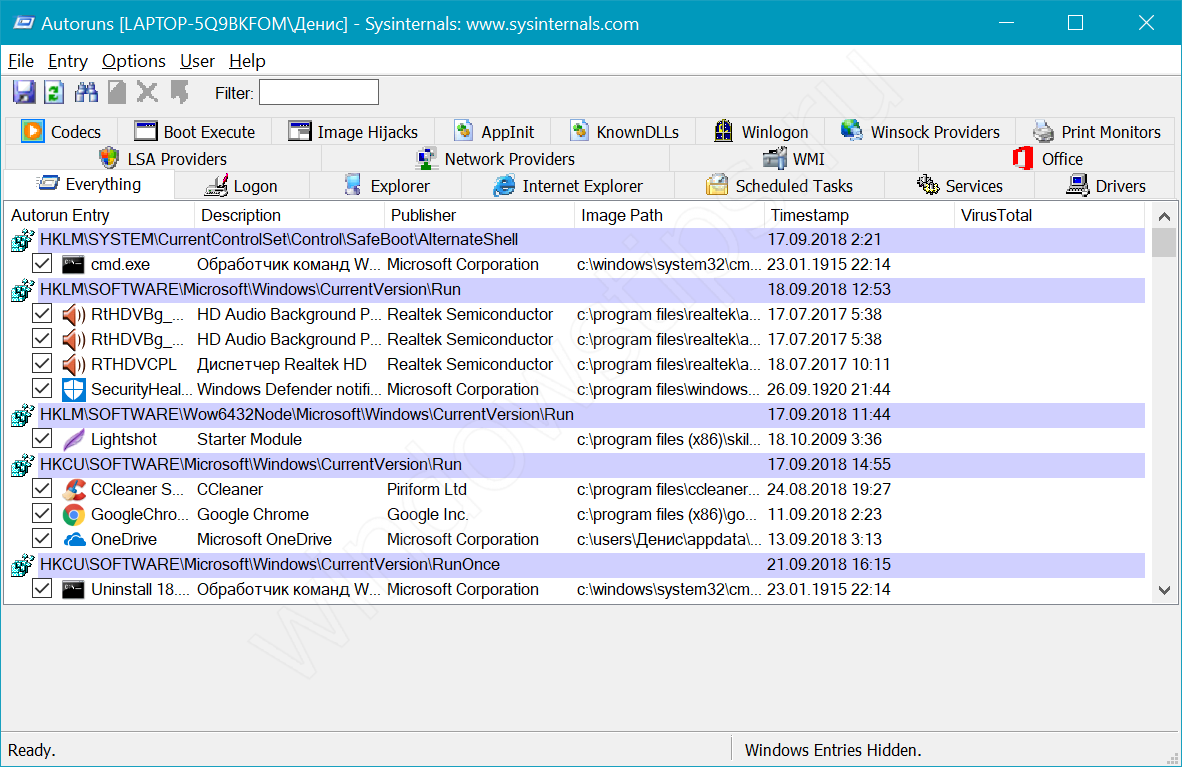 Как пользоваться Autoruns:
