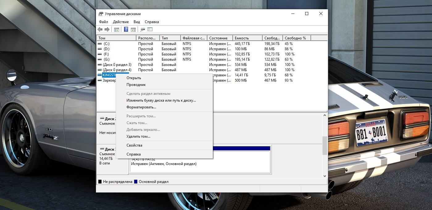 Для этого, кликните правой кнопкой мыши на нём и выберите «Изменить букву диска или путь к диску». Если в всплывающем меню нет такого пункта, то это может быть по причине отсутствия или неподдерживаемого типа файловой системы носителя информации.