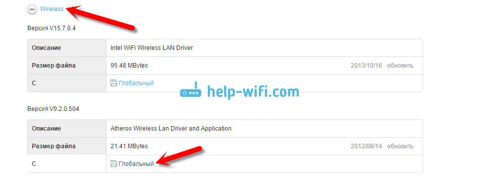 Ищу и открываю вкладку Wireless, и скачиваю драйвер для своего адаптера.
