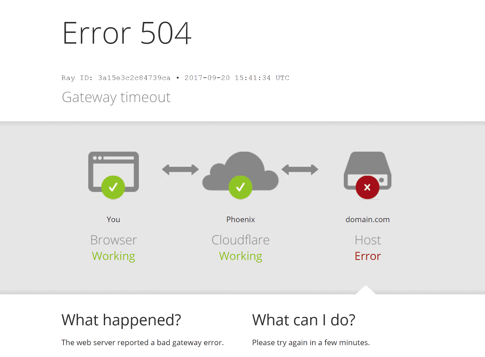 Примечание: Ошибка 504 схожа с ошибкой 502 Bad Gateway, но отличие в том, что в последнем случае существует техническая проблема.