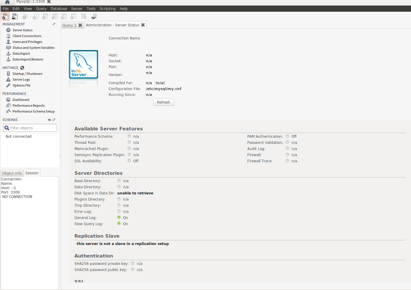 Ошибка «No connection established» возникает в MySQL Workbench, когда программа не может установить соединение с базой данных. Это может быть вызвано различными причинами, такими как неправильные настройки соединения, неправильные учетные данные пользователя, проблемы с сетью или проблемы с самим сервером баз данных.