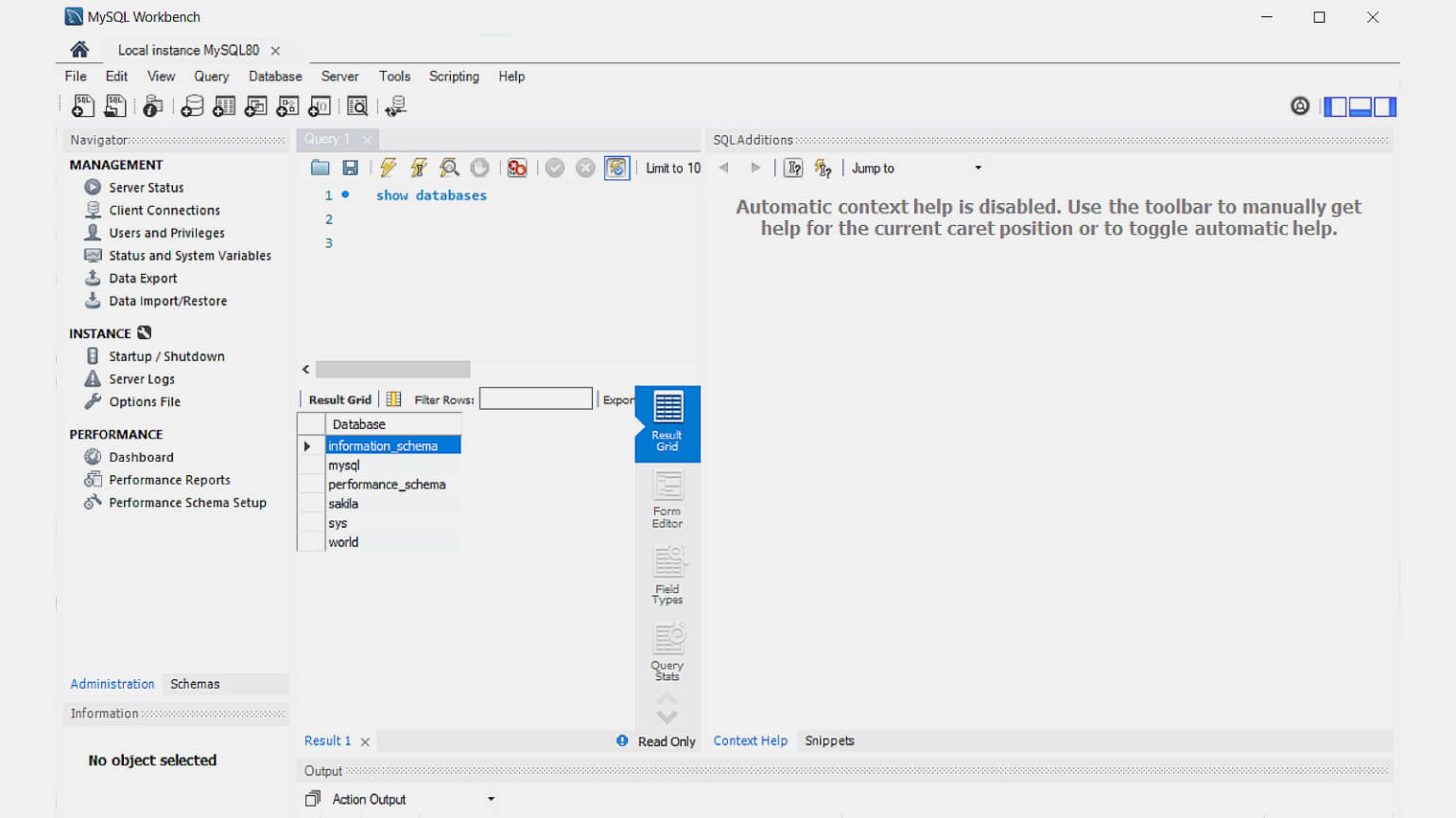 Выполним запрос к базе world . Во-первых, выберем базу данных world как активную.
