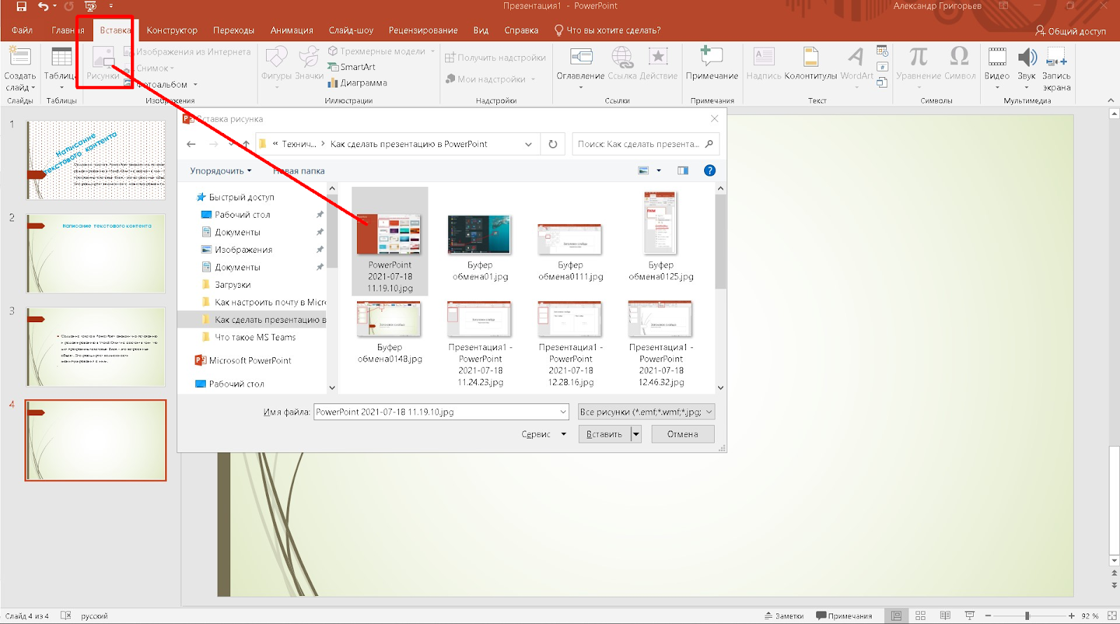 Вставка картинок и фотографий