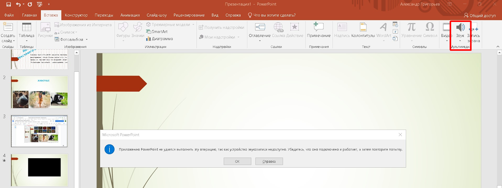 Вставка медиафайлов
