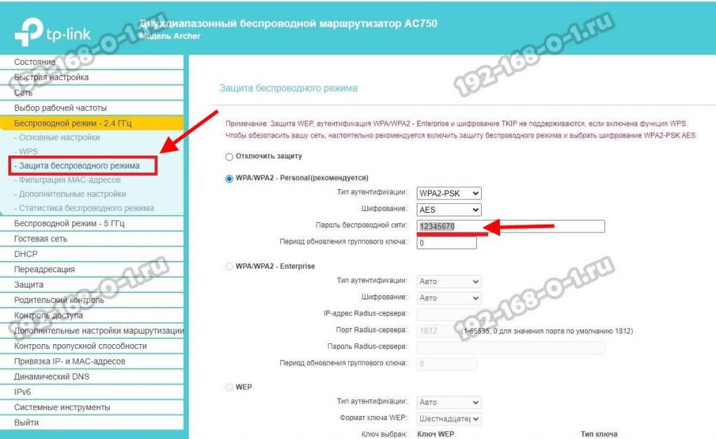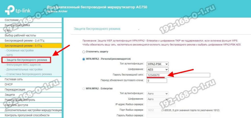 На старом варианте личного кабинета TP-Link для каждого из двух диапазонов есть отдельный раздел «Беспроводной режим 2.4 ГГЦ»: