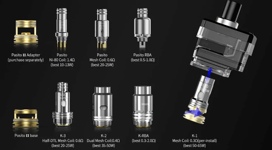 А вот эта тема интересная получилась, поскольку Пасито 2 может использовать 7 разных испарителей.