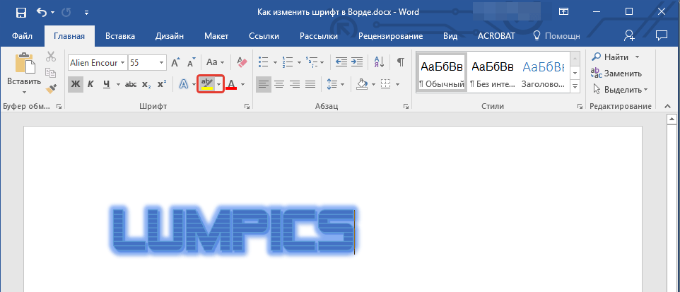В группе “Шрифт” рядом с кнопкой, рассмотренной выше, находится кнопка “Цвет выделения текста”, с помощью которой можно изменить фон, на котором находится шрифт.