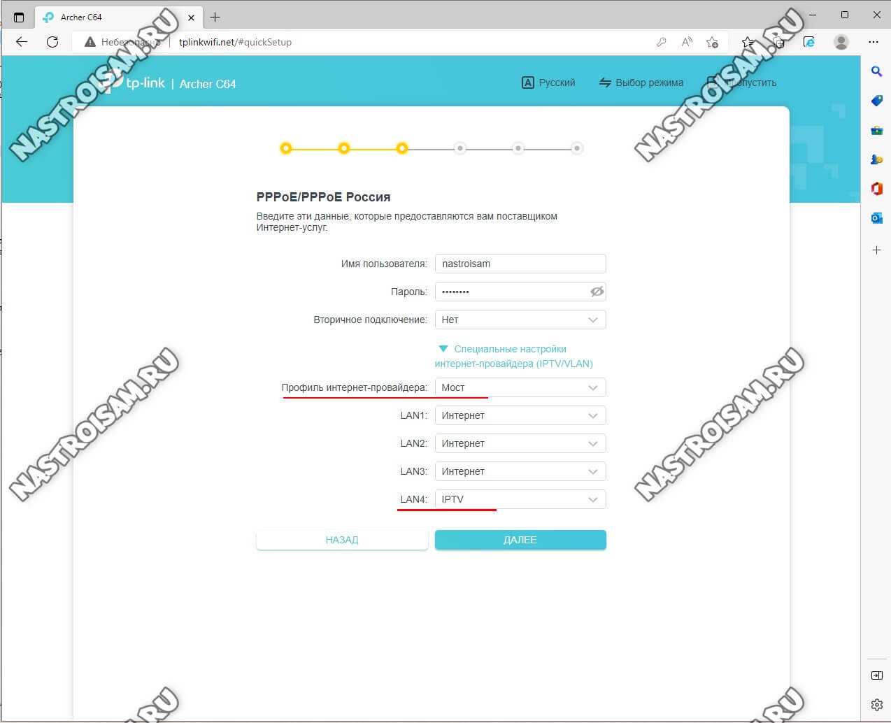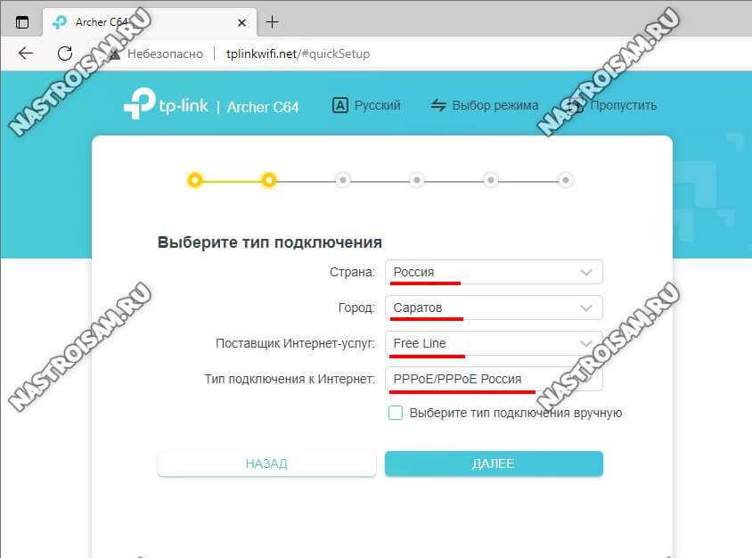 Нажимаем на кнопку «Далее». Базовая настройка TP-Link Archer C64 завершена, основной функционал настроен!