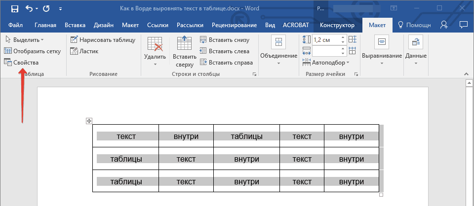 Таблица, как и обычный документ, по форматированию особо ничем не отличается. Настройки столбцов и строк можно найти в окне «Свойства таблицы», которое находится под командой «Свойства» на панели в меню Word.Можно изменять шрифт и размер текста, отступы и т. п.
