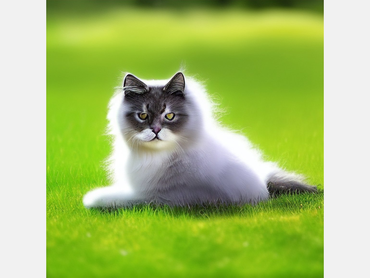 Промпт: «fluffy cat sitting on the grass photorealistic»: