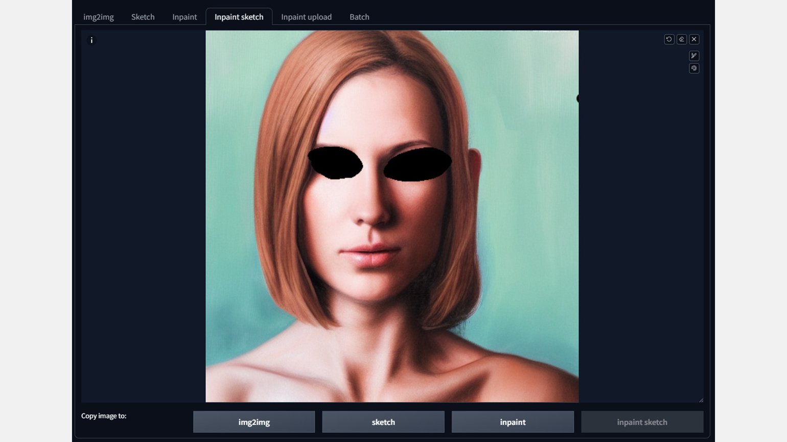 Закрасили глаза, написали промпт new eyes, получилось так: