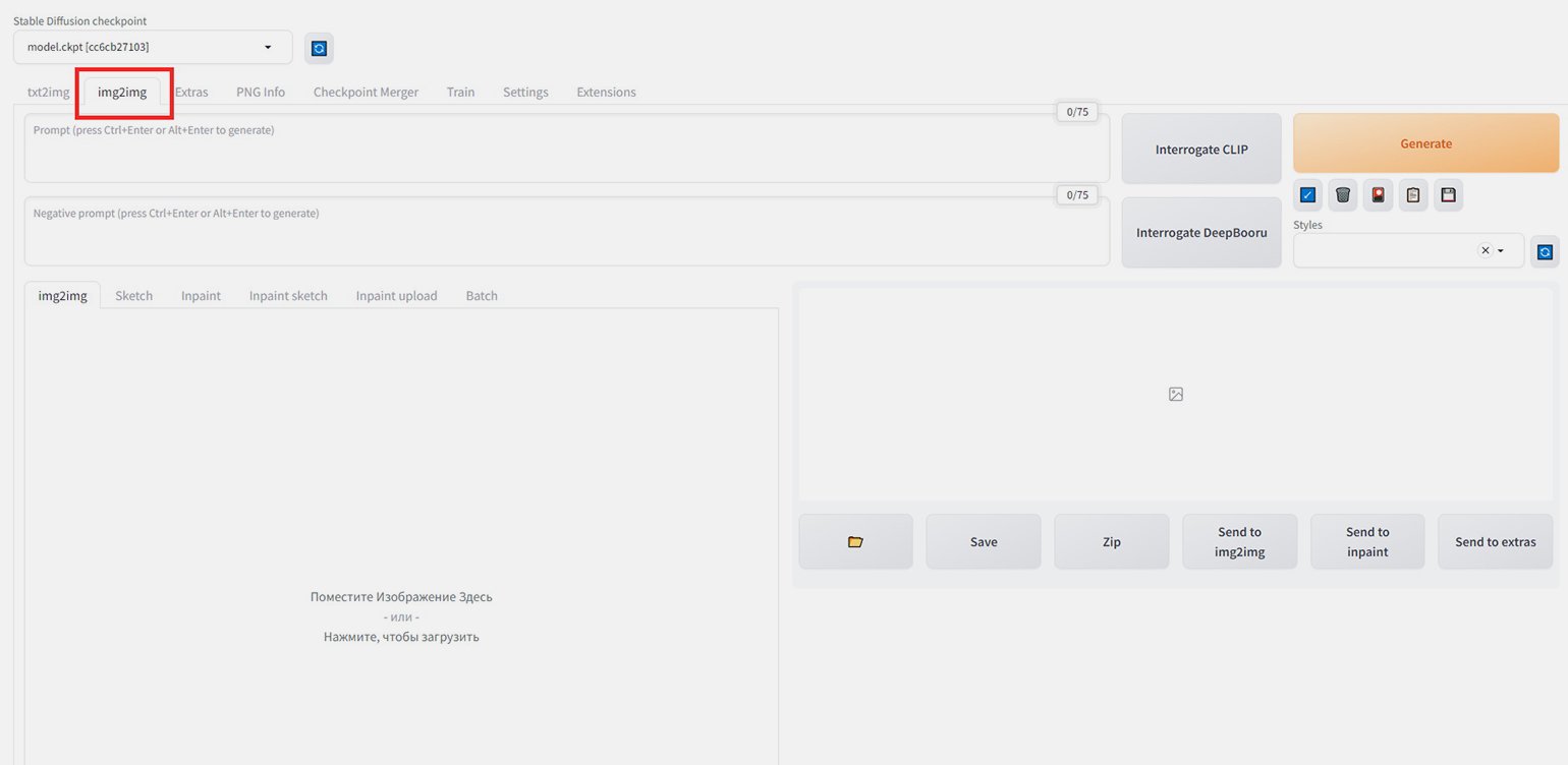 - Inpaint upload ― позволяет не рисовать маску вручную, как Inpaint, а загружать картинку, которая послужит маской.